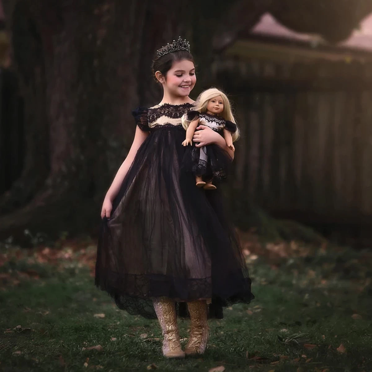 The most talked about dress of the season has arrived! Social media was buzzing when we posted a picture of this dress, so here’s the unveiling! It’s hands down GORGEOUS and will be the talk of the room. Mom’s are asking for these for themselves, so we are sewing as fast as we can and making them for women also! The dress has a sheer black overlay with vintage inspired Chantilly lace trimmings, revealing the most gorgeous shade of butterscotch underneath. This dress is pure perfection! We only have a small amount coming in, but we are making more. If you have your eye on one, grab your sizes now. The lace is super soft, never scratchy and back zips. Fully lined, machine wash, hang dry.  DON’T FORGET HER MATCHING DOLL DRESS!