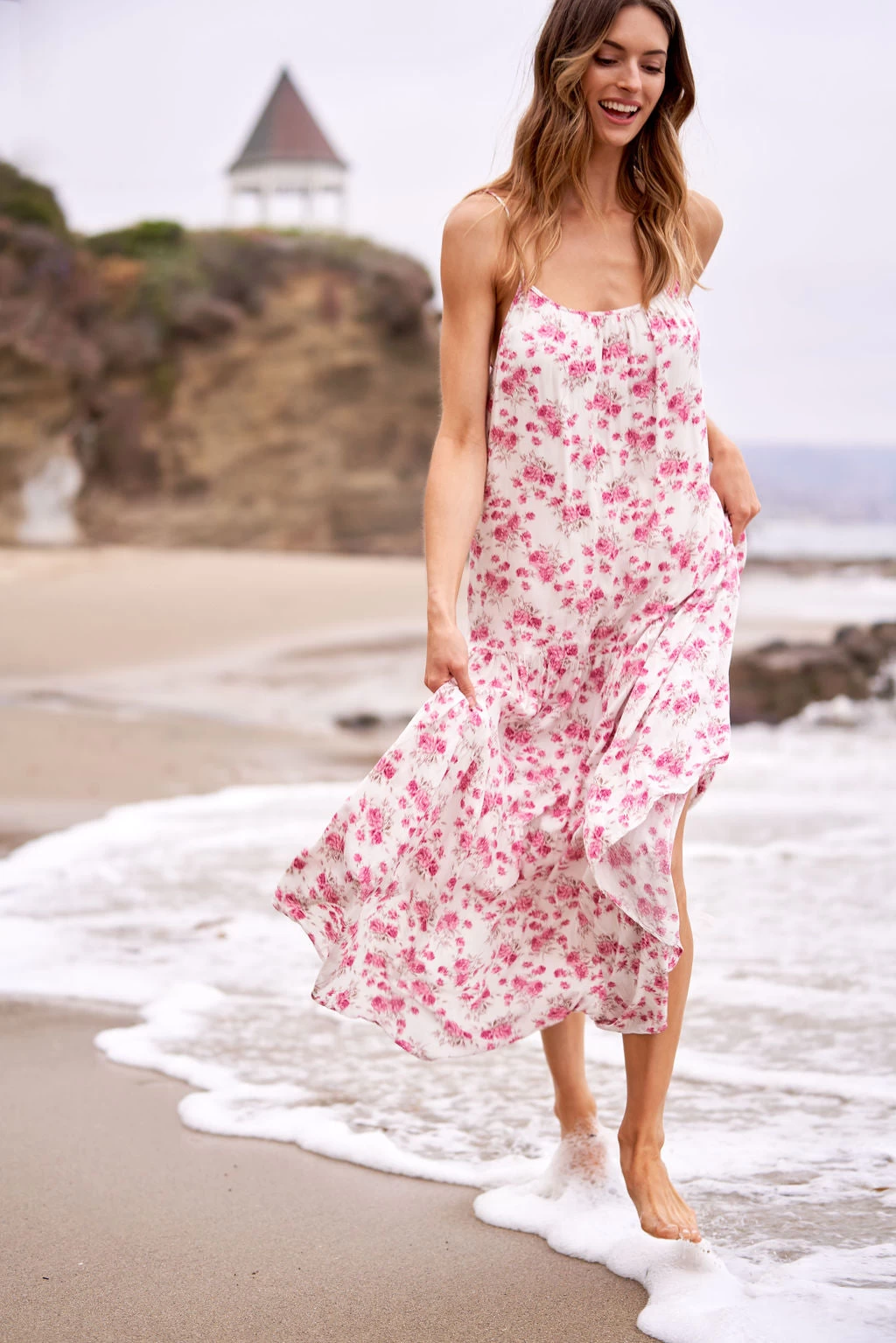 The most darling maxi for all your Summer endeavors! Light & airy, this delicate floral maxi is a perfect choice for the beach, town, and just about everything in between. You’ll be the talk of the town! Adjustable straps for the perfect fit. 100% rayon, machine wash, hang dry.Â