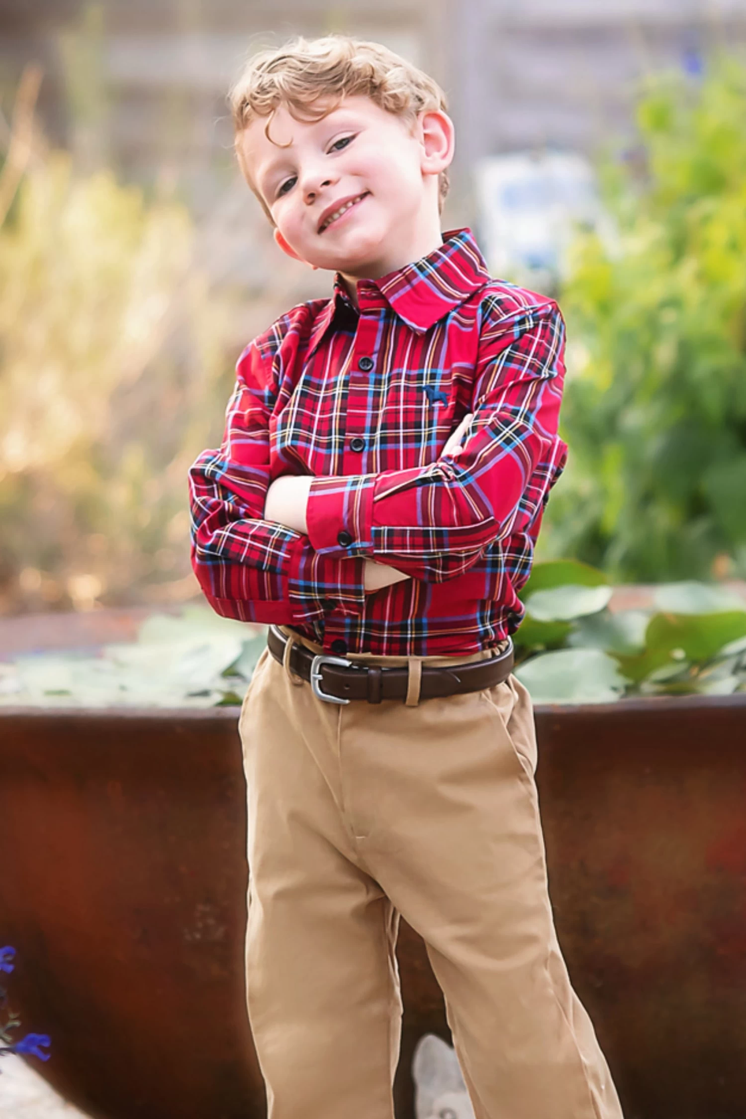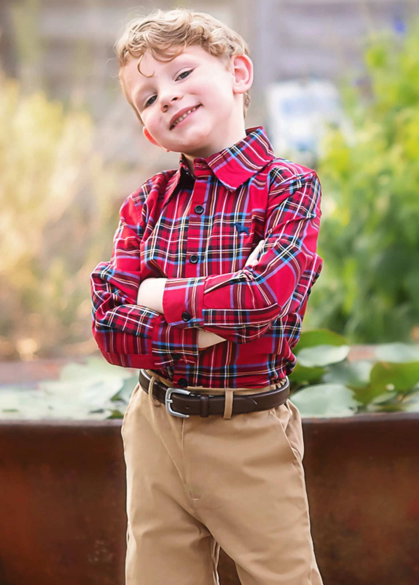 The most darling button-down for your little man! This classic long sleeve is made to be paired with just about anything, and finished off with a dog emblem. Pairs wonderfully with any of our suits or pants!