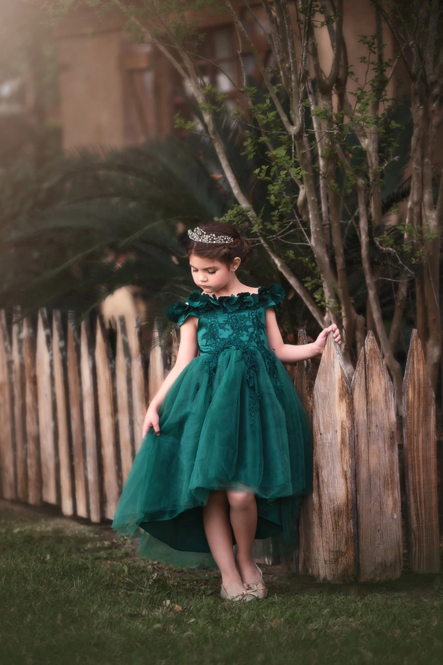 This gown is STUNNING in person. You won’t believe you paid so little for such luxury. The soft bridal satin bodice is covered in gorgeous lace details. The hi-lo skirt is filled with bountiful layers of ethereal tuling, perfect for the girl and her twirl! Laser cut flower details grace the shoulders and neckline for the perfect finishing touch on what is the most perfect dress! Small satin covered elastic shoulder straps keep everything perfectly in place. 100% poly self, 100% soft cotton lining. Fully lined, back zip. Machine wash, hang dry. Â