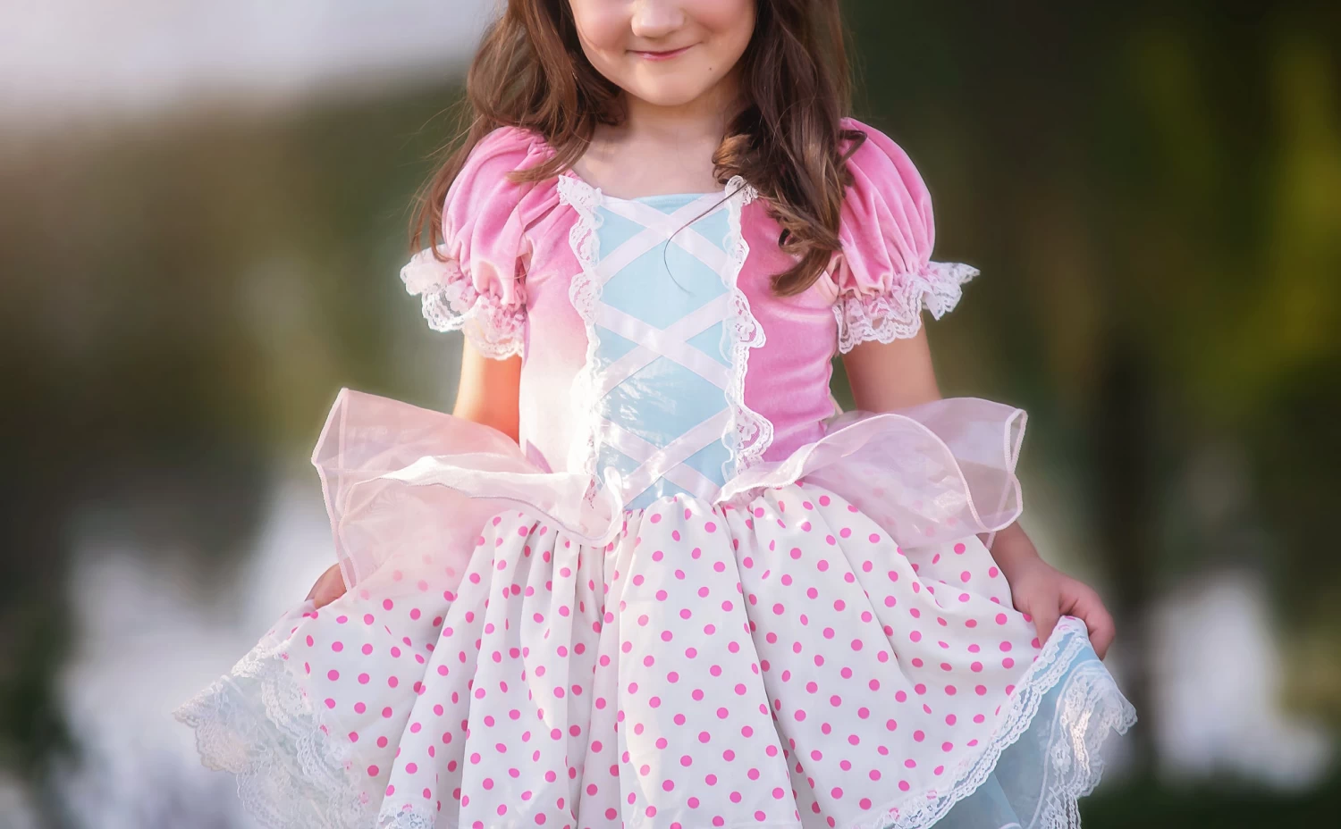 This darling dress features lace and ruffles galore, soft cotton velvet, and a skirt made for the girl with all the twirl. A must have for Halloween or everyday dress-up!Â