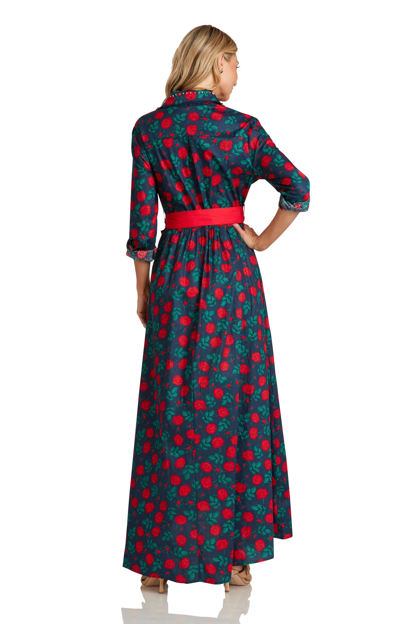 This stunning maxi is the ultimate head-turner. Our take on a classic shirt dress, this button-front maxi boasts a subtle hi-low skirt for an extra dramatic effect, a jeweled collar for that extra hint of sparkle and a removable waist tie for that perfect fit. This dress is truly a showstopper!