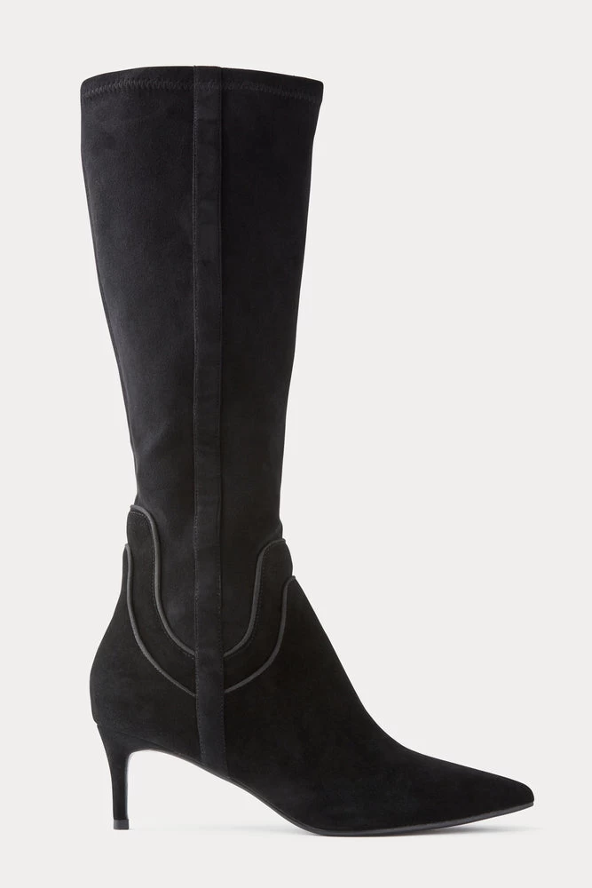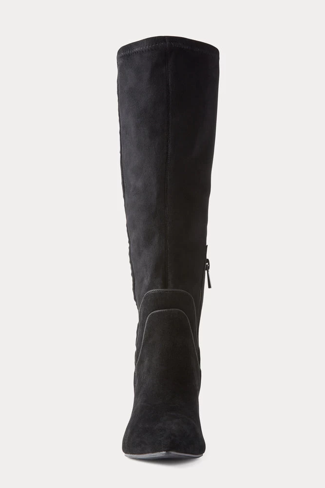 This pair has been crafted from sumptuous suede with a 2 3/4″ heel, a pointed toe, stretch suede side panels and side zip closure.Â