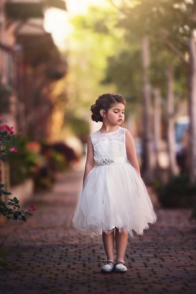 This gorgeous dress will have all eyes on her when she walks into the room. Â A stunning lace covered bodice starts the look, while layers of on point tulling ruffles make up the oh so twirly skirt. Â A sparkle ribbon belt self ties in back, for just the right fit. Â This dress is a showstopper! Â Fully lined with soft cotton, back zip. Machine wash, hang dry. Belt is completely removable.Â