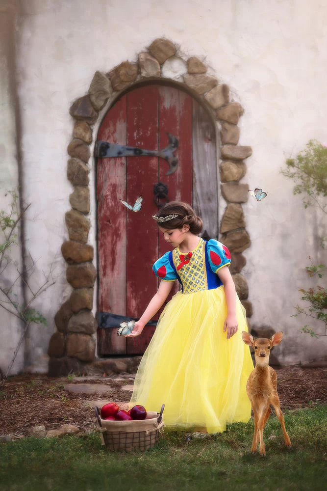 She will be the fairest in all the land in this darling princess dress.  Full of details and whimsy, this is not your average costume. Incredible quality and a perfect keepsake for years to come. Don’t forget to add our tiara and our wand for just the right accessories for the princess! These are soft and never scratchy, we understand tactile sensitivity and always design using the softest materials, then we fully line the dresses with soft cotton. NO GLITTER is ever used on ANY of our products. TIARA AND WAND ARE SOLD SEPARATELY. 100% poly, fully lined with soft cotton, machine wash, hang dry. Â
